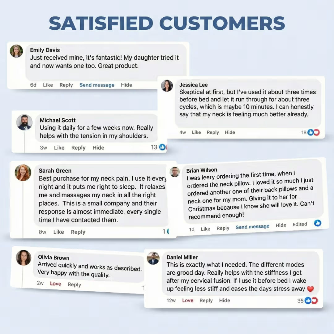 Either it transforms your neck comfort, or you get every penny back. You risk nothing.